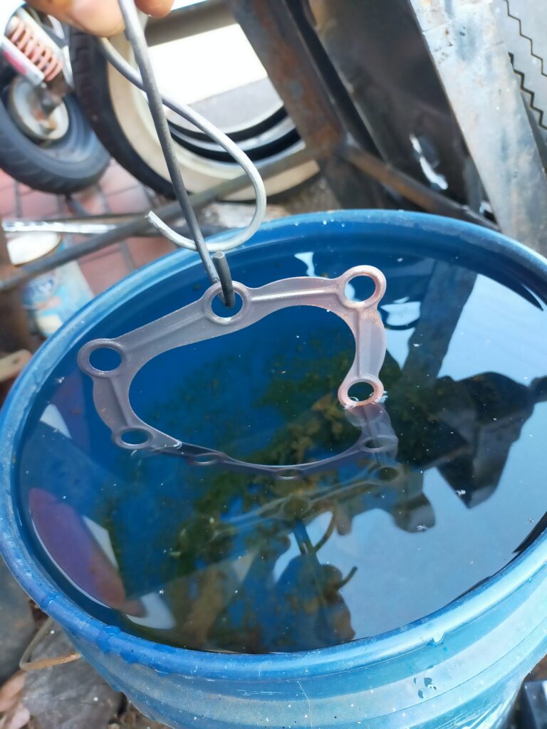 銅ガスケットは熱して水に浸けて「焼なまし」して使います