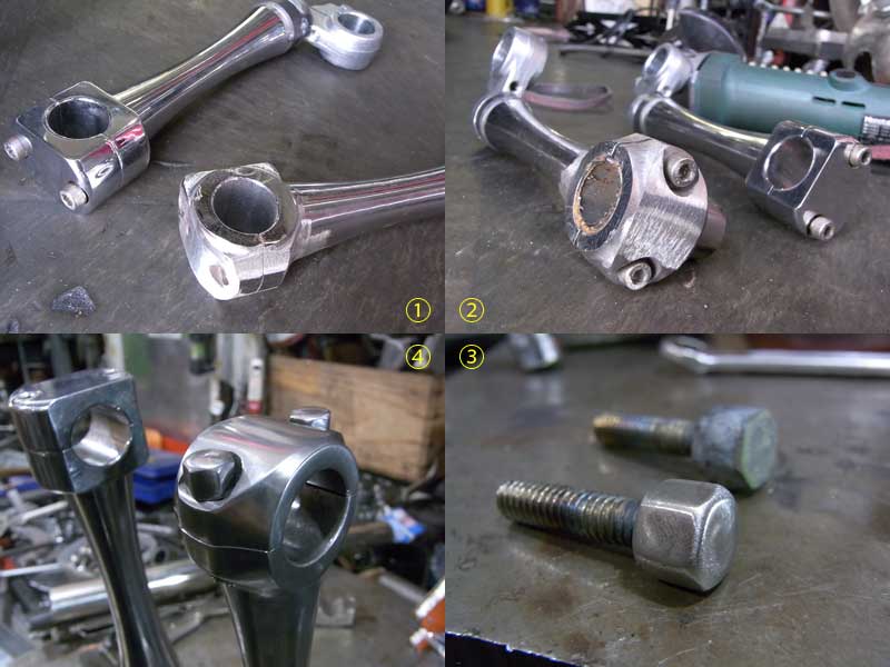 ④3本作ってやっと納得いったドラッグバーに直接、溶接。レバーも角を全部落としスムージングしました。